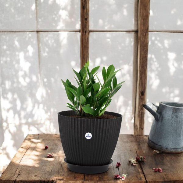 Gardens Need 7‑Inch Round Flower Pots with Tray (Set of 5) are versatile, lightweight black plastic planters designed for both indoor and outdoor gardening. Each pot comes with a matching tray to catch excess water, helping protect surfaces while ensuring proper drainage. Made from durable, weather‑resistant plastic, these pots are ideal for flowers, herbs, succulents, and small plants in homes, offices, balconies, patios, and terraces. Their classic round shape and sleek black finish blend seamlessly with any décor, while the sturdy construction makes them easy to move and maintain. Easy to clean and reusable season after season, these stylish grand pots provide a practical and attractive solution for all your planting needs.