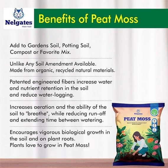 • Organic Composition: Peat moss is a natural soil amendment derived from decomposed sphagnum moss.