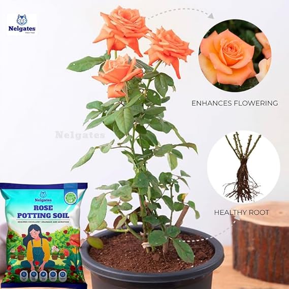 Premium Potting Soil Mix for Rose and Flowering Plants | Enriched with Growth Promoters and Flower Boosters | Organic and Well-Drained